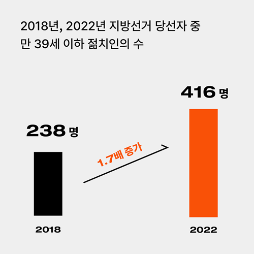 지방의회에서 만 39세 이하 젊치인은 전체의 6% 밖에 되지 않아요. (2018년 기준) 이에 반해 50세 이상 의원은 83%나 되고요. 뉴웨이즈가 만난 젊은 지방의원은 입을 모아 말해요. 정책을 만들고 싶어도 젊은 유권자의 문제를 모르니 다른 의원을 설득하는 게 한참 걸린다고요.